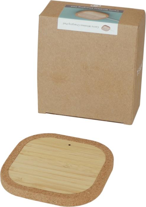 La base de carga inalámbrica “Cerris” de 15 W fabricada con corcho y bambú es la opción más sostenible entre los cargadores inalámbricos. Su carcasa y área de carga están hechas de corcho y bambú reales. Con una salida de carga inalámbrica de hasta 15 W, los dispositivos se recargan por completo a gran velocidad. Compatible con todos los dispositivos Qi (iPhone 8 o superior y dispositivos Android que admitan carga inalámbrica). Viene con un cable USB A fijo TPE de 100 cm. Se entrega en una caja de papel kraft de primera calidad con una pegatina de colores. Dado que el corcho y el bambú son materiales naturales, puede haber ligeras variaciones de color y tamaño en cada artículo, lo que puede afectar al resultado final de la impresión.Ref. 12431006