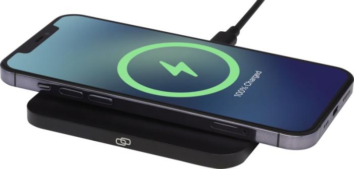 La base de carga inalámbrica de primera calidad “Hybrid” de 15 W es un gran accesorio para cualquier escritorio de oficina. Gracias a su diseño ultrafino, cabe fácilmente en cualquier compartimento de una funda de portátil. Está fabricada con una resistente carcasa de aluminio combinada con una base de carga de cuero TPU antideslizante. Con una salida de carga inalámbrica de hasta 15 W, los dispositivos se recargan por completo a gran velocidad. Compatible con todos los dispositivos Qi (iPhone 8 o superior y dispositivos Android que admitan carga inalámbrica). Incorpora la característica FOD (Foreign Object Detection) para identificar objetos no deseados y garantizar un proceso de carga sin problemas. Se entrega en una caja de papel kraft de primera calidad con una pegatina de colores. Incluye un cable de carga de tipo C.Ref. 12424090