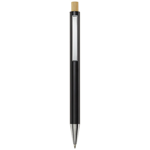 El bolígrafo “Cyrus” está fabricado con aluminio reciclado, que requiere menos energía que la producción de aluminio a partir de materias primas. También disminuye la cantidad de residuos en los vertederos y ayuda a conservar los recursos naturales con el objetivo de reducir las emisiones de gases de efecto invernadero. El pulsador está hecho de bambú. Color de la tinta: Azul. Longitud de escritura: 800 metros. Tamaño de la punta: 1,00 mm.Ref. 10787401