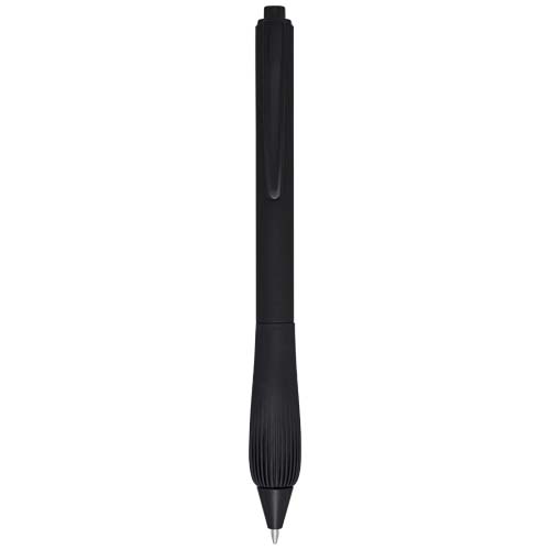 Bolígrafo de plástico reciclado con cuerpo recubierto de goma y empuñadura de TPR. Color de la tinta: Negro. Longitud de escritura: 1000 metros. Tamaño del plumín: 1,0 mm.Ref. 10792101