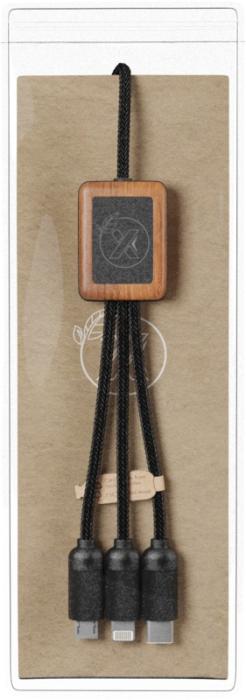 Cable de bambú 3 en 1 con cables de 1 metro de largo y 3 conectores (tipo C, micro USB, iPhone). Se puede grabar con un logotipo retroiluminado en ambos lados. Se entrega en una funda de TPU, con una tarjeta de papel kraft.Ref. 2PX05571
