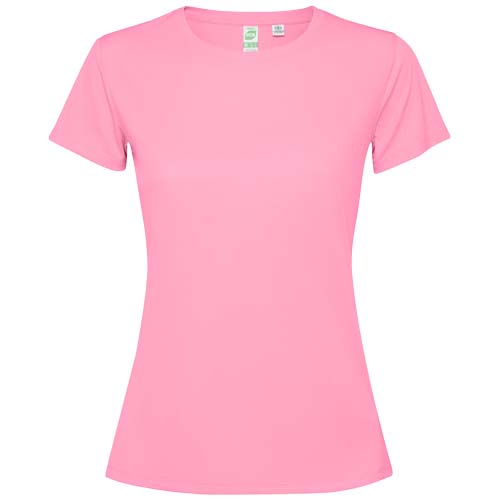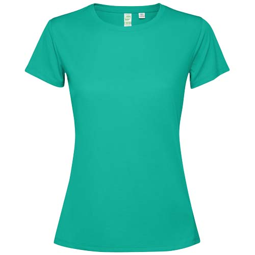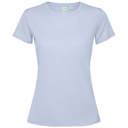 Camiseta técnica entallada de manga corta para mujer. Cuello con costuras a juego. Dobladillo trasero ligeramente más largo que el delantero. Costuras laterales desplazadas hacia delante.Ref. R04311C1